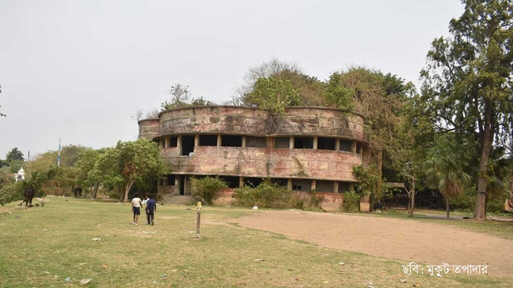 একটা ক্ষীণ রৌদ্রের রেখা বাড়িটির ওপর এসে পড়েছে। গঙ্গা পাড়ে ধোঁয়াশার মত তুলির কয়েকটি আঁচড়ে ফুটিয়ে তোলা মূর্ত ছবিটি এক সুবিশাল সাহেবি আমলের কুঠিবাড়ি। বিশ্বজনীন অস্তিত্বের সংকটে এও যেন এক গভীর সংকট নিয়ে দাঁড়িয়ে আছে। নদীর কাছে যাবার কথা ছিল! কিন্তু নদীতো পাড় ভেঙে ক্রমশ এগিয়ে আসছে বাড়ির সিঁড়ির কাছে। শূন্যতা নিভৃতের মাঝে বাড়িটিতে পাখিরা বাসা নিয়েছে। ভেতরে পরিত্যক্ত সব, ভাঙা জানালার ফাঁক ফোঁকর দিয়ে তারা আকাশে বিষন্নতার মেঘ দেখে। কুঠিবাড়ির চারিধারে গলা টিপে ধরেছে শিকড়-বাকড়। দেওয়াল ভেঙে কিছুদূর গিয়ে পথ হারিয়ে বেঁচে থাকার নিহিত সম্ভাবনার মতো উঠে আসছে ক্রমশ। এর কোনও আজ উত্তরপুরুষ নেই। বর্তমান সময় এ বাড়ির ভবিষ্যৎ কি? কেউ আর প্রশ্ন করে না। সময়ের সাক্ষ্য বহন করে প্রবাহিত হচ্ছে ভাবিকালের দিকে। তখন তাকে খুঁজে নেওয়ার আগে জানতে হবে কিছু ইতিহাস।