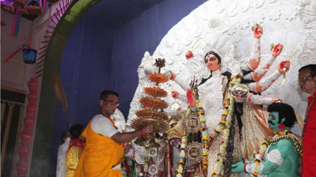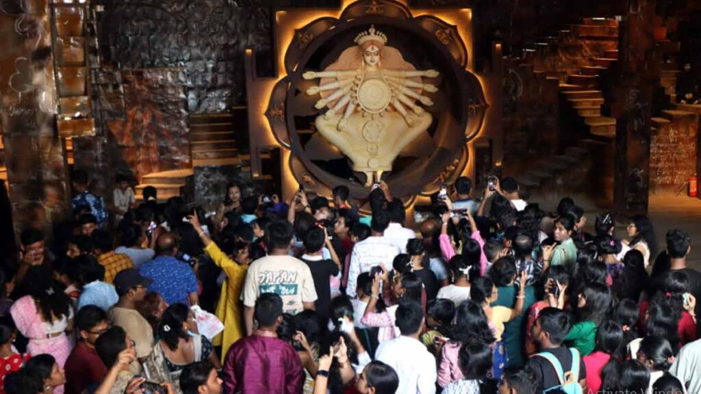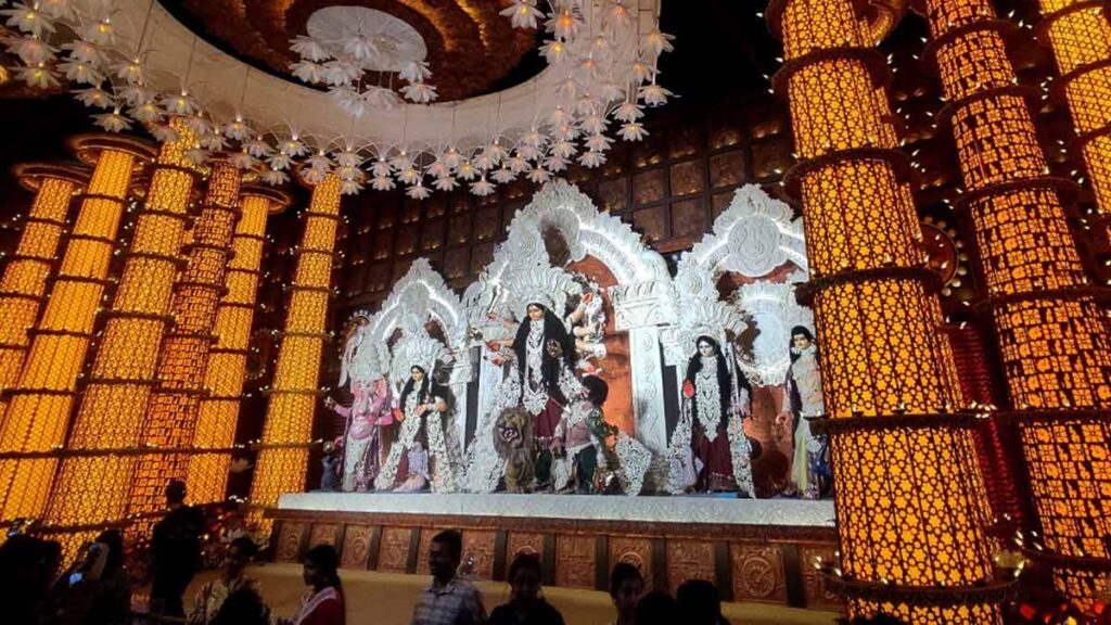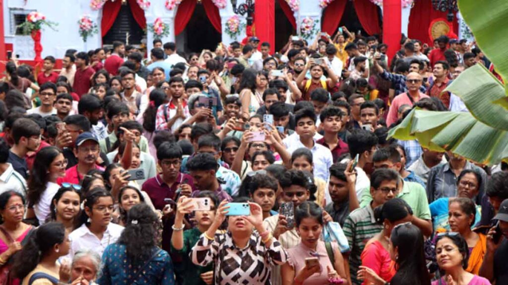 বৃষ্টি আর মেঘলা আকাশকে উপেক্ষা করেই দুপুর থেকে রাস্তায় মানুষের ঢল। হাতে ছাতা, মুখে পুজোর আনন্দ— ঠাকুর দেখতে বেরিয়ে পড়েছেন সকলে। সময় গড়ানোর সঙ্গে সঙ্গে বাড়ছে ভিড়, রাতে জনজোয়ার নেমেছে কলকাতা ও শহরতলীর মণ্ডপে মণ্ডপে। উত্তর থেকে দক্ষিণ, পূর্ব থেকে পশ্চিম— কোথাও ফাঁকা নেই, সর্বত্র উৎসবের উচ্ছ্বাস। কোথাও থিমপুজো ঘিরে উন্মাদনা, কোথাও ঐতিহ্যের গন্ধে মাখা প্রতিমা দর্শন। জনসমাগম সামলাতে নেমেছে অতিরিক্ত পুলিশবাহিনী, মণ্ডপে মণ্ডপে চলছে কড়া নজরদারি। রাজীব বসুর ক্যামেরায় ধরা পড়া কলকাতার কিছু পুজো-চিত্র।