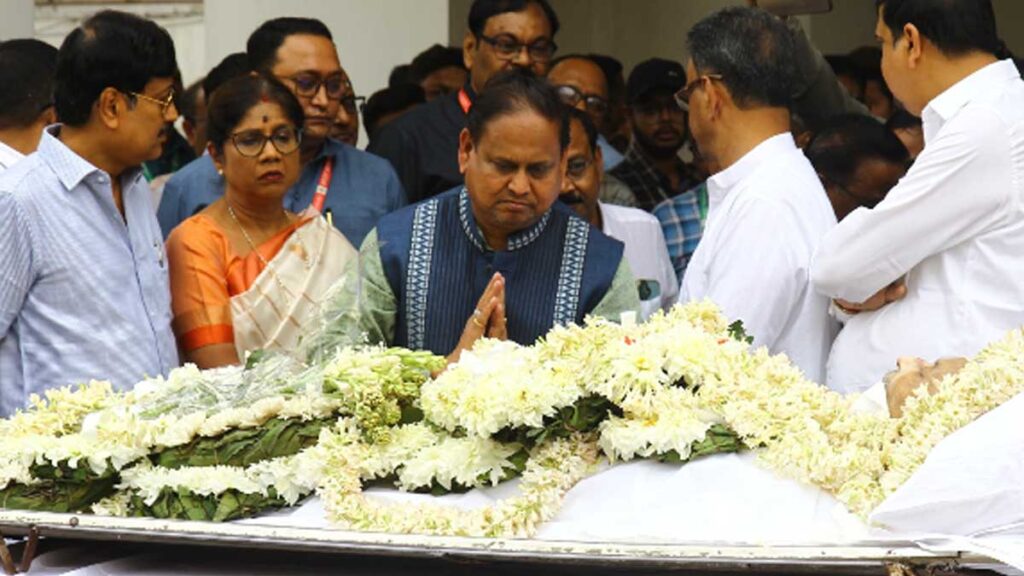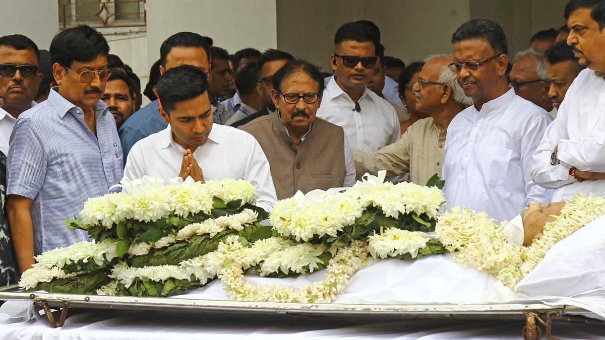 প্রয়াত মুকুল রায়কে সোমবার বিধানসভায় আনুষ্ঠানিক ভাবে শ্রদ্ধাজ্ঞাপন করা হল। শোকস্তব্ধ পরিবেশে তাঁকে শেষ শ্রদ্ধা জানান বিধানসভার সদস্যরা। উপস্থিত ছিলেন তৃণমূল কংগ্রেসের সর্বভারতীয় সাধারণ সম্পাদক অভিষেক বন্দ্যোপাধ্যায়, বিধানসভার অধ্যক্ষ বিমান বন্দ্যোপাধ্যায়-সহ একাধিক বিধায়ক ও রাজনৈতিক ব্যক্তিত্ব। রবিবার গভীর রাতে কলকাতা-র একটি বেসরকারি হাসপাতালে শেষ নিঃশ্বাস ত্যাগ করেন মুকুল রায়। মৃত্যুকালে তাঁর বয়স হয়েছিল ৭১ বছর। পরিবার সূত্রে জানা গিয়েছে, দীর্ঘদিন ধরে কিডনি সংক্রান্ত সমস্যাসহ একাধিক শারীরিক জটিলতায় ভুগছিলেন তিনি। ছবি: রাজীব বসু