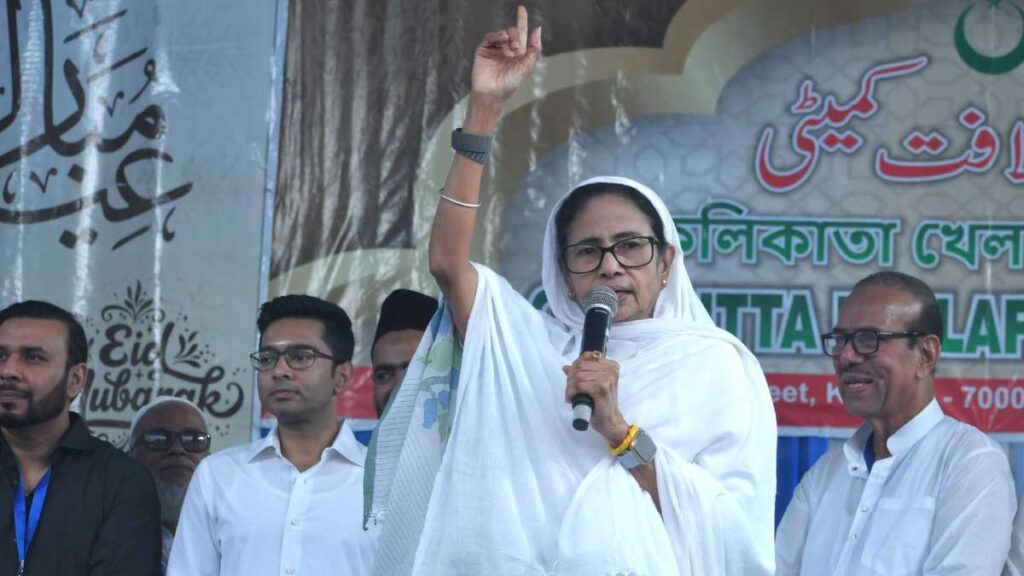কলকাতার রেড রোড-এ ইদের নামাজের মঞ্চ থেকেই এসআইআর ইস্যুতে ফের কেন্দ্রকে তীব্র আক্রমণ করলেন মুখ্যমন্ত্রী মমতা বন্দ্যোপাধ্যায়। ভোটার তালিকায় নাম কাটা নিয়ে উদ্বেগ প্রকাশ করে তিনি জানান, এই ইস্যুতে তাঁর লড়াই ভবিষ্যতেও জারি থাকবে। একইসঙ্গে প্রধানমন্ত্রী নরেন্দ্র মোদী-কে সরাসরি নিশানা করেন তিনি।