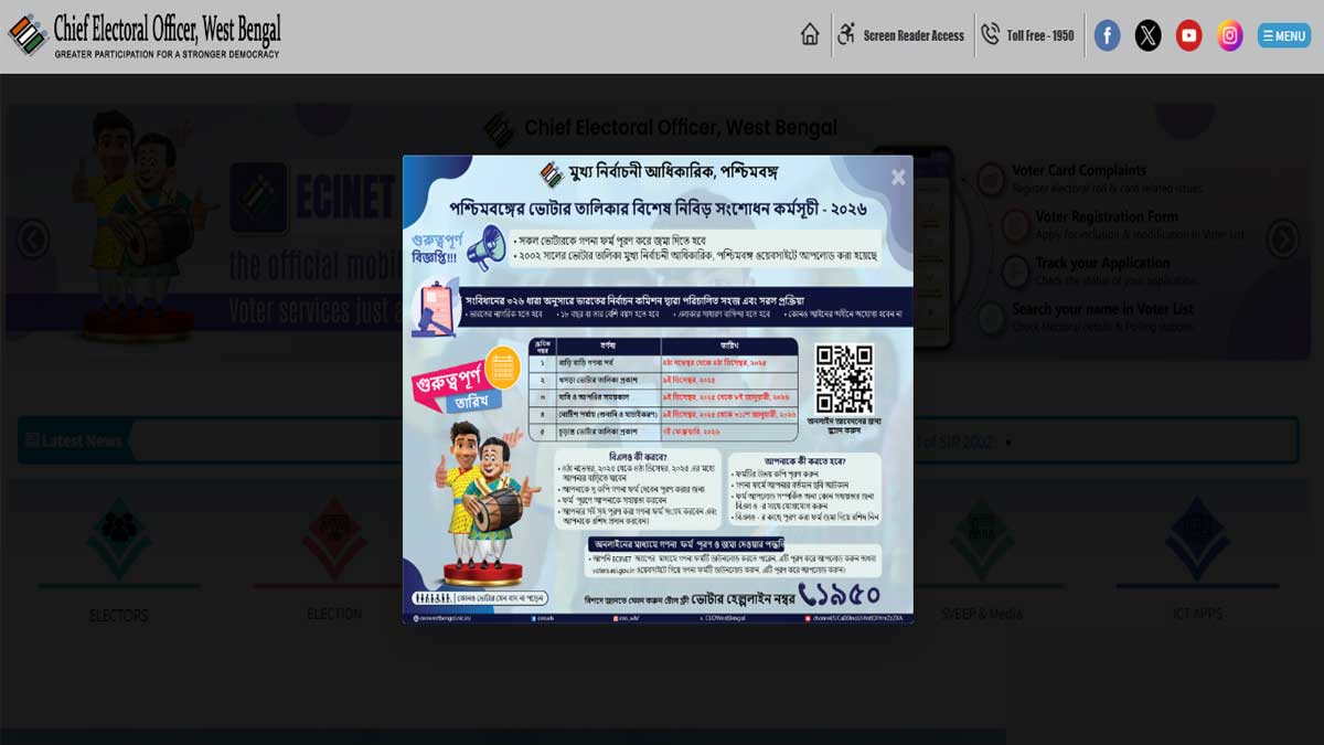 অবশেষে নতুন ওয়েবসাইট চালু করল সিইও দফতর। সূত্রের খবর, এই ওয়েবসাইটেই ২০০২ সালের ভোটার তালিকার পাশাপাশি এসআইআর সংক্রান্ত যাবতীয় কাজকর্ম করা যাবে।