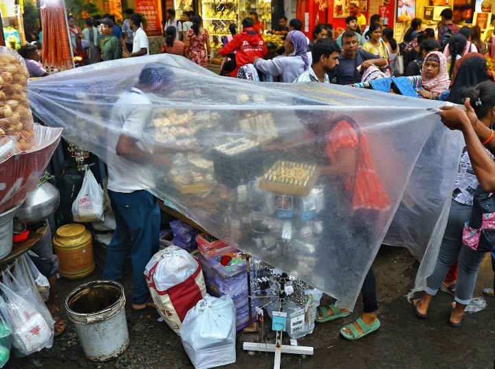 বৃষ্টি মাথায় নিয়ে পুজোর কেনাকাটায় ভিড় নিউমার্কেটে। ছবি: রাজীব বসু