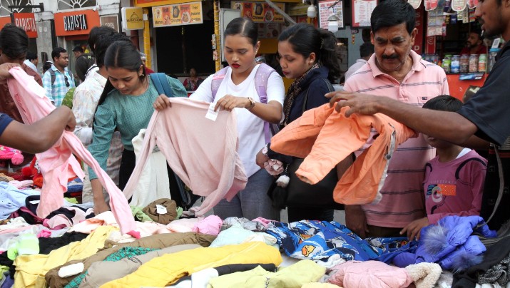 শহরে হালকা শীতের আমেজে গরমের পোশাক বেচাকেনা। ছবি: রাজীব বসু