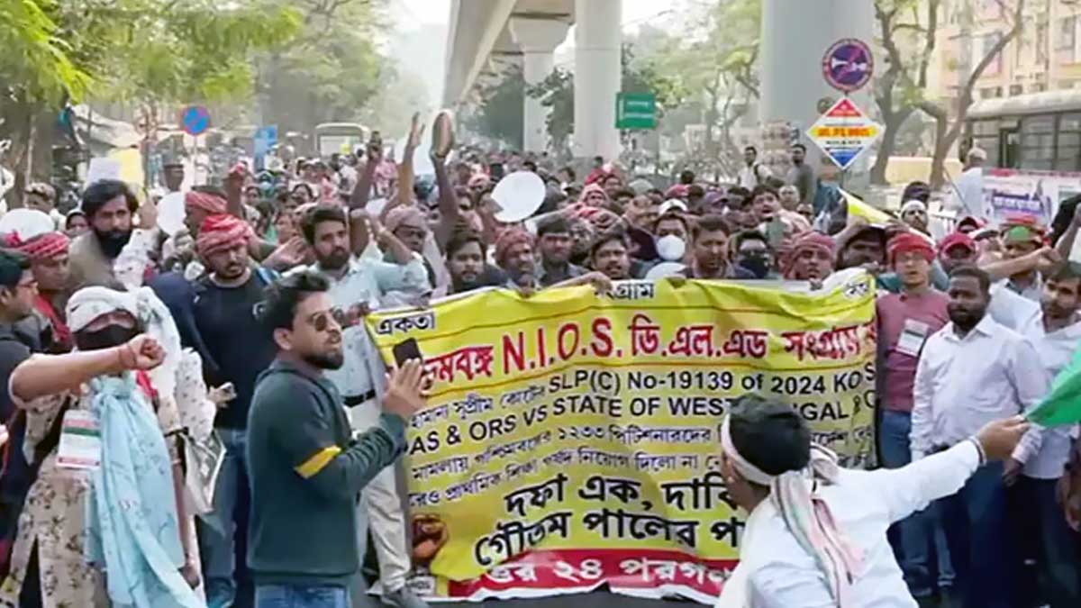 ভোটের মুখে রাজ্যে ফের রাস্তায় নামলেন চাকরিপ্রার্থীরা। ২০১৪ ও ২০১৭ সালের টেট উত্তীর্ণ (এনআইওএস ডি.এল.এড) প্রার্থীরা নিয়োগের দাবিতে সোমবার বিকাশ ভবন অভিযানের ডাক দেন। তবে মিছিল করুণাময়ীতে পৌঁছতেই পুলিশ তা আটকে দেয় বলে অভিযোগ। পরিস্থিতি উত্তপ্ত হয়ে ওঠে, বেশ কয়েকজনকে আটক করা হয়েছে বলেও দাবি আন্দোলনকারীদের।