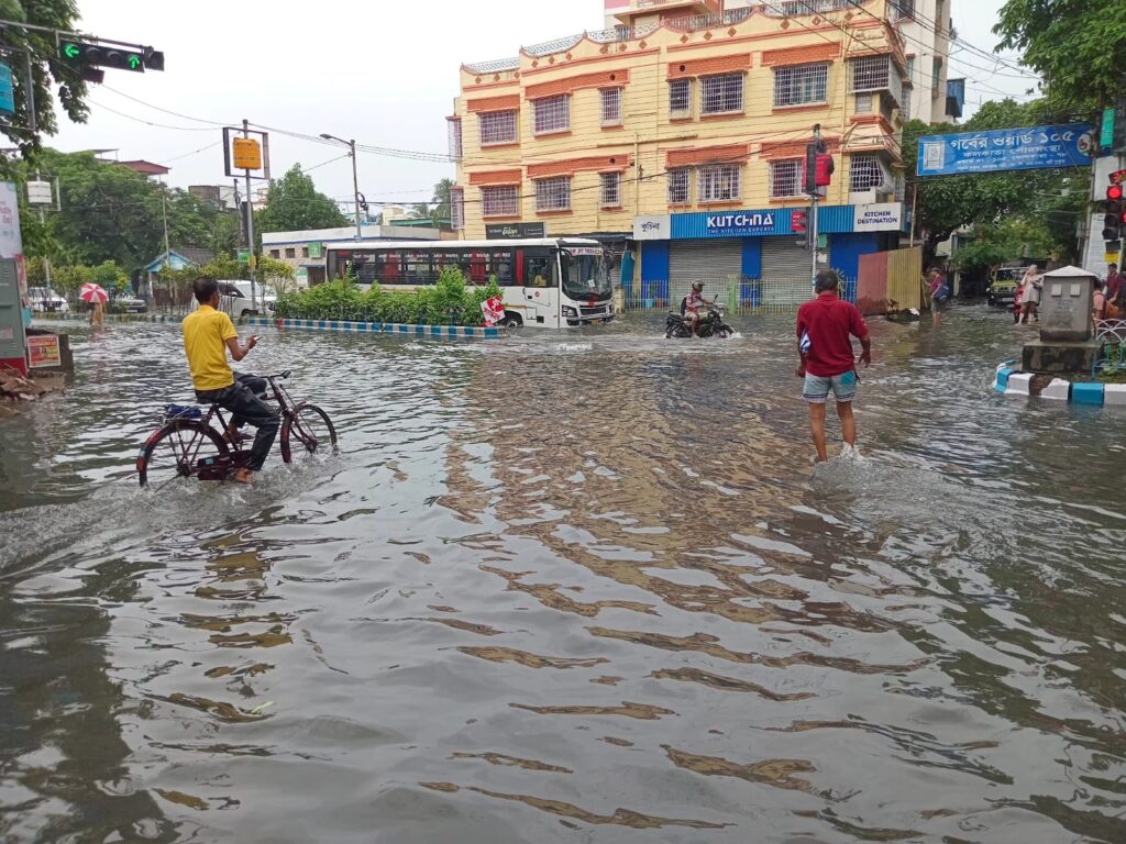 টানা বৃষ্টিতে জলমগ্ন কলকাতা। কোথাও হাঁটুসমান, কোথাও আবার কোমর ছাড়িয়ে জল জমেছে রাস্তাঘাটে। কসবা থেকে লেনিন সরণি, বিধান সরণি থেকে মহাত্মা গান্ধী রোড— উত্তর ও দক্ষিণ কলকাতা যেন এক বিশাল জলাশয়। নিত্যদিনের ব্যস্ত শহর মঙ্গলবার সকালে যেন হঠাৎ থমকে দাঁড়াল বৃষ্টির দাপটে। দেখুন রাজীব বসুর ক্যামেরায়