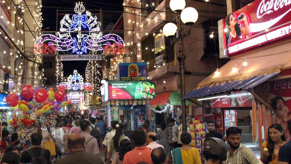 সপ্তমীতে আলোকিত লেকটাউন। ছবি: রাজীব বসু