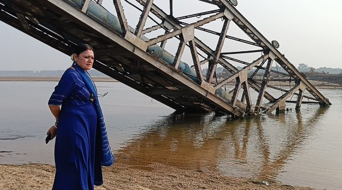 বার্নপুর : আসানসোল দক্ষিণ বিধানসভায় বিজেপি বিধায়ক অগ্নিমিত্রা পাল মঙ্গলবার দুপুরে বার্নপুরের কালাঝড়িয়ায় দামোদর নদে পিএইচইর পাইপলাইন যাওয়া ভেঙে পড়া ব্রিজ পরিদর্শন করেন।