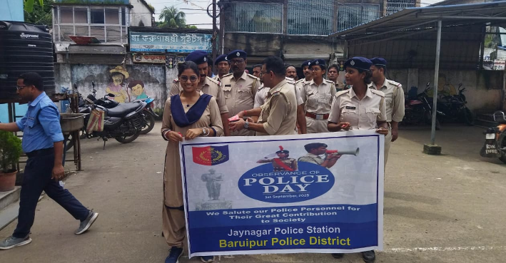 উজ্জ্বল বন্দ্যোপাধ্যায়, জয়নগর : সোমবার পুলিশ দিবসে জয়নগর থানার পুলিশের উদ্যোগে সচেতনতা মূলক পদযাত্রা হয়ে গেল। যাতে জয়নগর থানার একাধিক পুলিশ আধিকারিক,সিভিক ভলান্টিয়াররা উপস্থিত ছিলেন।