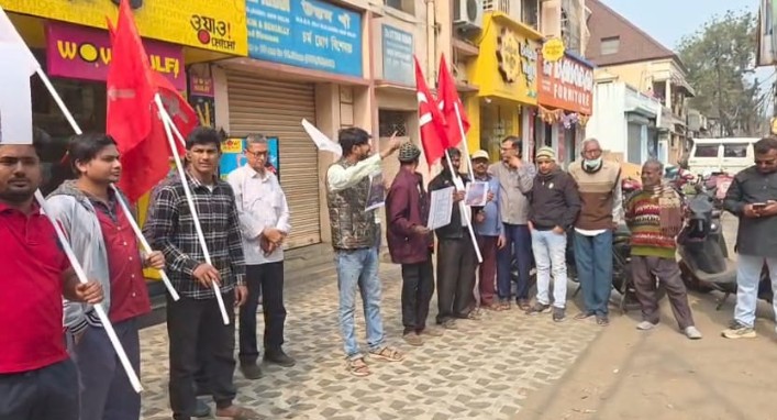 রানিগঞ্জ: কলকাতায় একটি বেসরকারি মোমো সংস্থার আউটলেট ও গোডাউনে ভয়াবহ অগ্নিকাণ্ডে একাধিক শ্রমিকের মৃত্যুর ঘটনার প্রতিবাদে রানিগঞ্জের এনএসবি রোড এলাকায় অবস্থিত ওই সংস্থার আউটলেটের সামনে যৌথভাবে বিক্ষোভ প্রদর্শন করল বামপন্থী শ্রমিক সংগঠন সিটু (CITU) ও ডিওয়াইএফআই।