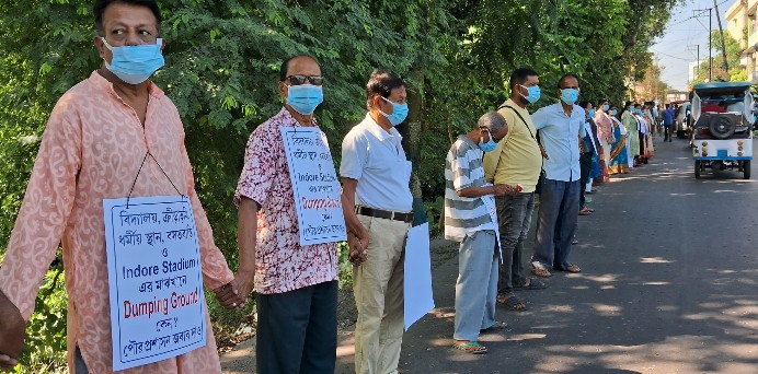 এ দিন ওই এলাকায় আয়োজিত মানববন্ধন কর্মসূচিতে ২৪ নম্বর ওয়ার্ডের বাসিন্দারা ছাড়াও বিভিন্ন স্বেচ্ছাসেবী ও পরিবেশপ্রেমী সংগঠনের সদস্যরা হাতে প্লাকার্ড ও পোস্টার নিয়ে সামিল হন। চিকিৎসক সুদীপন মিত্র-সহ অন্যরা তাদের বক্তব্যে জানান, ওই এলাকায় জনবসতি, স্কুল, ধর্মীয় প্রতিষ্ঠান রয়েছে। প্রাকৃতিক পরিবেশের কারণে এখানে পরিযায়ী পাখিদেরও দেখা যায়। ডাম্পিং গ্রাউন্ডের কারণে সবাই সমস্যায় পড়ছেন। ব্যক্তিগত জমিতে এ ভাবে দীর্ঘসময় ডাম্পিং গ্রাউন্ড করা যায় না বলেও অভিযোগ করেন একাংশ বক্তা। এ দিন তিন শিশুকে অক্সিজেন মাস্ক পরিয়ে, স্যালাইন দিয়ে প্রতীকী পরিস্থিতি তুলে ধরার চেষ্টা করা হয় বলে জানান আয়োজকেরা।