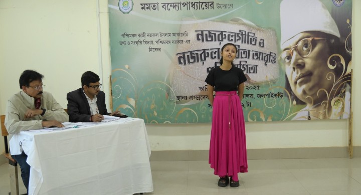 অভিষেক সেনগুপ্ত, জলপাইগুড়ি: জেলা তথ্য ও সংস্কৃতি দফতরের ব্যবস্থাপনায় পশ্চিমবঙ্গ কাজী নজরুল ইসলাম একাদেমির উদ্যোগে ‘নজরুল গীতি ও নজরুল কবিতা প্রতিযোগিতা’ হল প্রসন্নদেব মহিলা মহাবিদ্যালয়ে।