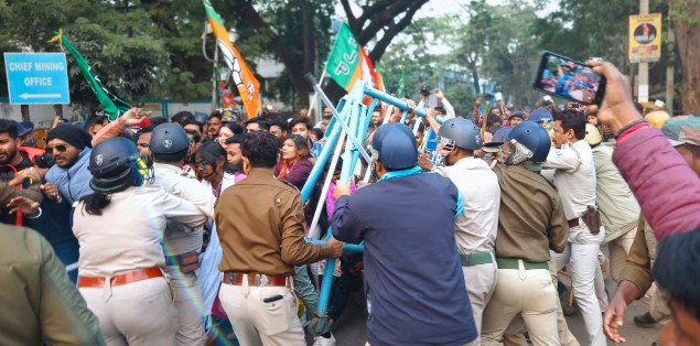 বিধায়ককের গাড়ি আটকানোর প্রতিবাদে আসানসোলে বিজেপির সিপি অফিস ঘেরাও ধুন্ধুমার, লাঠিচার্জের অভিযোগ