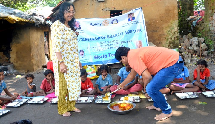আসানসোল : বিশ্ব খাদ্য দিবস উপলক্ষে বৃহস্পতিবার আসানসোলের ব্লু ফ্যাক্টরি এলাকার আদিবাসী গ্রামে ৫০ জন শিশুকে দুপুরের খাবার দেওয়া হল রোটারি ক্লাব অফ আসানসোল গ্রেটারের তরফে।