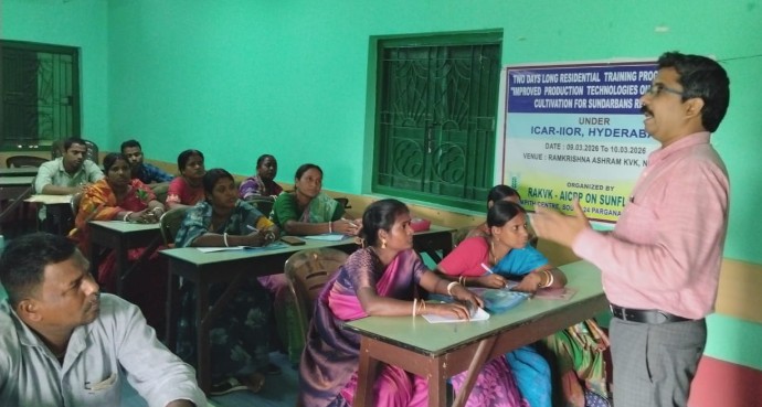 উজ্জ্বল বন্দ্যোপাধ্যায়, জয়নগর: সুন্দরবনের লবণাক্ত জমিতে সূর্যমুখী চাষ করে কৃষকেরা ভালো আয়ের সুযোগ পেতে পারেন—এই লক্ষ্যেই দু’দিনের প্রশিক্ষণ শিবিরের আয়োজন করল নিমপীঠ শ্রীরামকৃষ্ণ আশ্রম কৃষিবিজ্ঞান কেন্দ্র। মঙ্গলবার কৃষিবিজ্ঞান কেন্দ্রের উদ্যোগে আয়োজিত এই প্রশিক্ষণ শিবিরে অংশ নেন সাগর ব্লক-এর ৩০ জন কৃষক।
