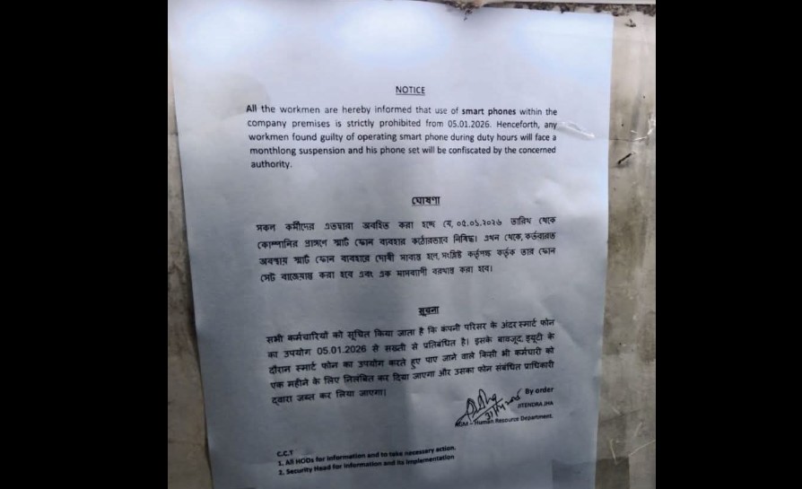 সালানপুর : অ্যান্ড্রয়েড ফোন সহ ধরা পড়লেই ফোন বাজেয়াপ্ত করার পাশাপাশি এক মাসের জন্য কাজ থেকে সাসপেন্ড করার কঠিন বিধি-নিষেধ জারি করল সালানপুর থানা এলাকার একটি বেসরকারি ইস্পাত কারখানা।