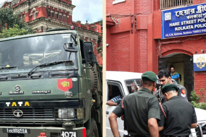 ছবি : রাজীব বসু কলকাতায় রাইটার্স বিল্ডিংয়ের সামনে সেনাবাহিনীর একটি ট্রাককে আটকে দিল ট্রাফিক পুলিশ। অভিযোগ, ট্রাকটি বেপরোয়া গতিতে চলছিল এবং সিগন্যালও মানেনি। পুলিশ সূত্রে জানা গিয়েছে, ফোর্ট উইলিয়া...