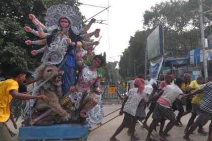 ছবি: রাজীব বসু আগামী রবিবার, ৫ অক্টোবর, কলকাতার রেড রোডে অনুষ্ঠিত হতে চলেছে দুর্গাপুজোর কার্নিভাল। মুখ্যমন্ত্রী মমতা বন্দ্যোপাধ্যায়ের উদ্যোগে প্রতিবছরের মতো এবারও এই মহা-অনুষ্ঠানে শহরের বড় বড় পুজো ক...